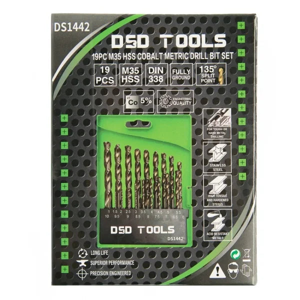 Engineering quality drill bits made from M35 steel with 5% Cobalt for longer life.